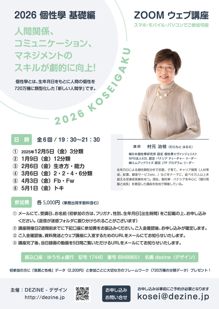 個性學講座 #3 生き方・能力 zoom